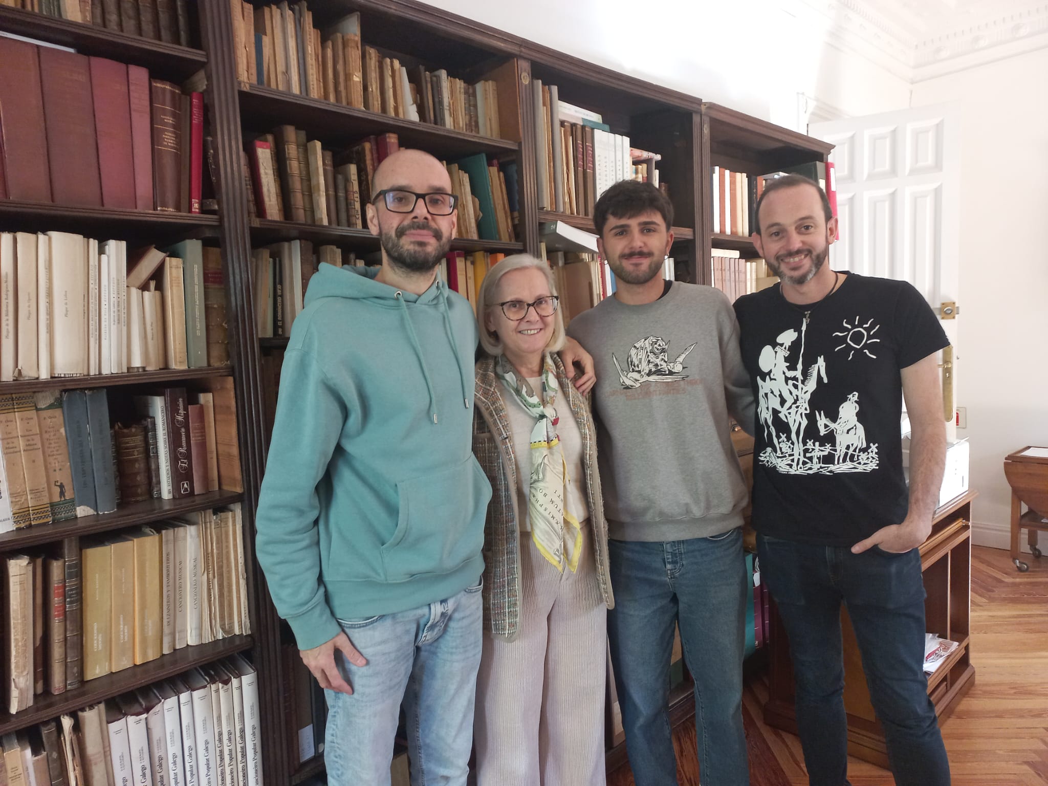 Durante el pasado curso 2024/2025, contamos con la colaboración de cuatro estudiantes del programa de prácticas del Grado en Español: Lengua y Literatura de la Universidad Complutense de Madrid. —Juan Félix Macua, Inés López Fernández, Antonio Hristov González y Alejandro de Galdo Dapena—, que desarrollaron su trabajo en el proyecto de conservación, catalogación y digitalización del Archivo del Romancero Menéndez Pidal/Goyri (ARMPG). Su labor estuvo dirigida por Jesús Antonio Cid, presidente de la Fundación, Álvaro Piquero, director del Archivo y profesor de la UNED, y Rubén Rojas, técnico del ARMPG.